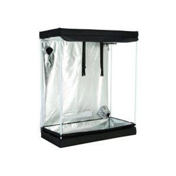 Das kleine Growzelt mit Mylar 600D Gewebe, 16mm pulverbeschichteten Metallstangen und Kunststoffecken hat die Maße 60x60x120 cm. Belastbarkeit ca. 30 kg. Inklusive Löcher für die Verkabelung (Durchmesser 10 cm) und Belüftung (Durchmesser 20 und 25 cm).